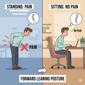 つまり、同じ「前かがみ」でも立っている時の方が筋肉や神経の緊張が強く、腰に痛みを感じやすいのです。
