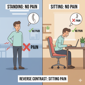 - 座っていると楽なのに、立ち上がると痛みが強い