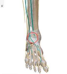 - 腓腹筋(ふくらはぎ)の起始部での緊張による神経障害