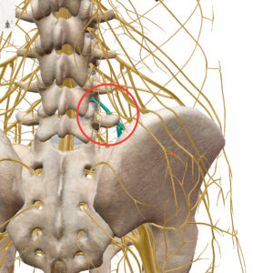 腰から足先にかけて走る大きな神経が圧迫・牽引され、正常に滑走(スムーズに動くこと)ができなくなることで痛みやしびれが生じます。