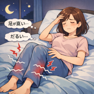 日中はそれほど気にならなくても、夜に横になる頃になると、足の重さやだるさ、ふくらはぎの張り、膝裏の違和感が強くなる方は少なくありません。
