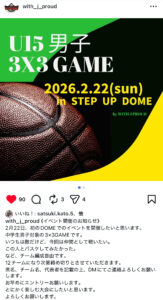 中学生男子(U15)対象の3×3バスケットボール大会が開催されます。